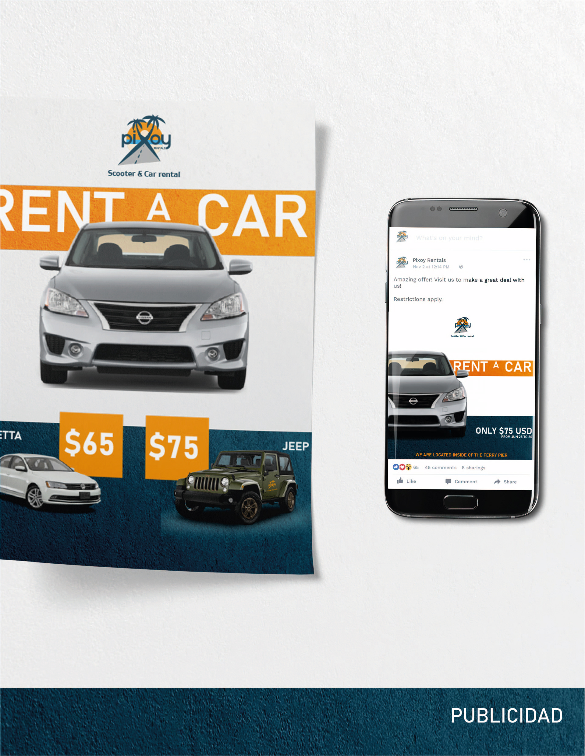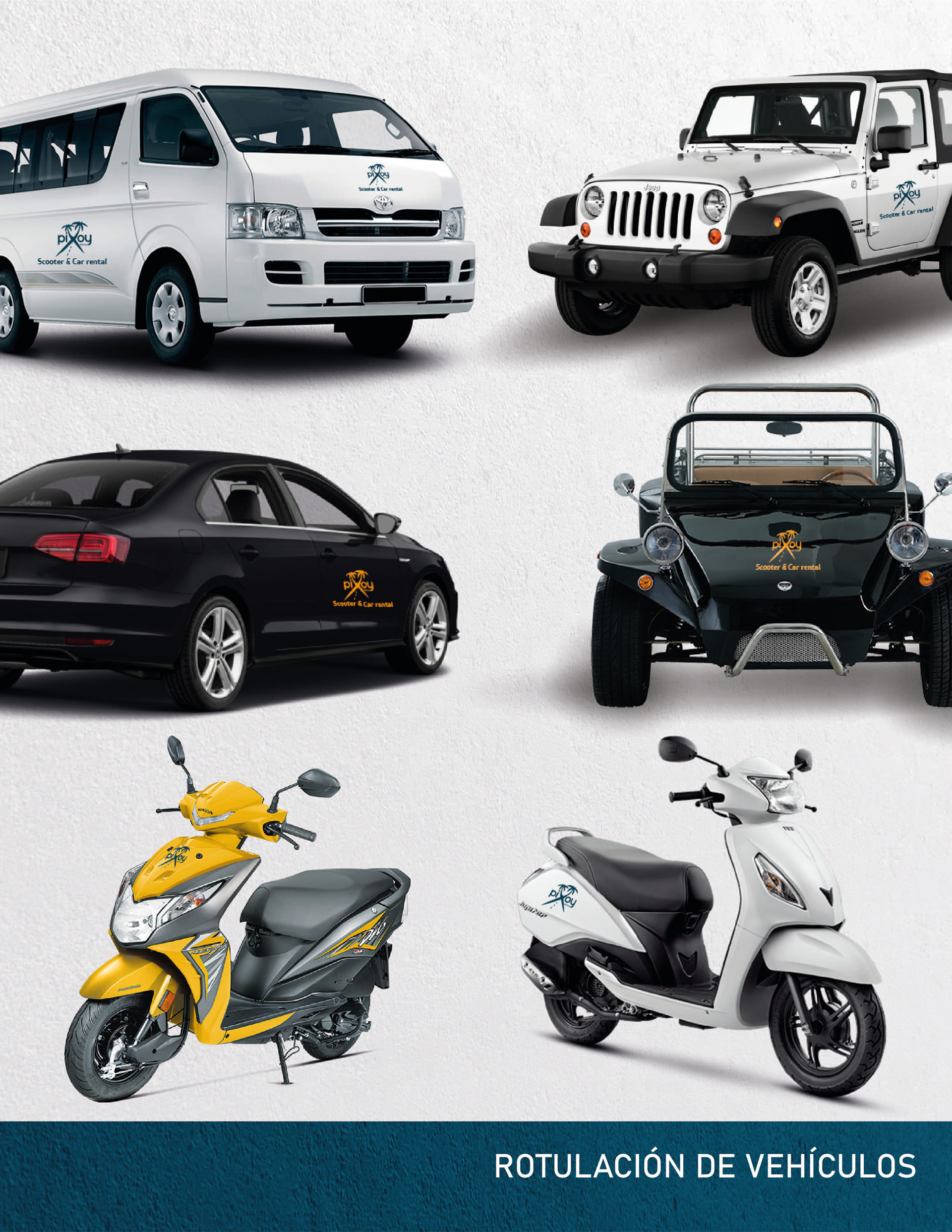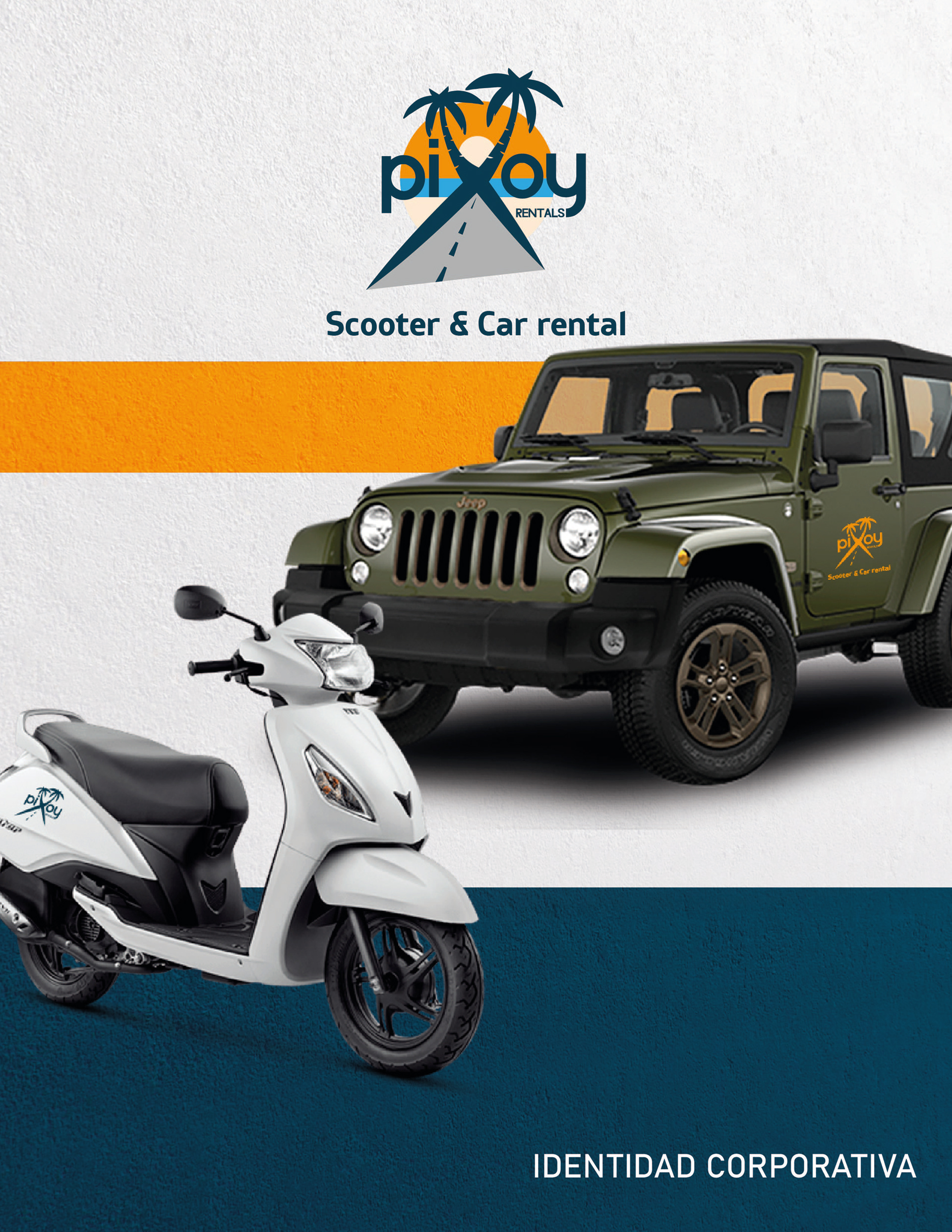 Pixoy Rental is a proudly Cozumelan company founded in 2004 dedicated to renting cars and motorcycles to local, national and foreign visitors to the island, always providing them with a quality service. In this year 2021 the company decided to renew its image in order to reinvent itself and at the same time adapt to the needs of its market and to maintaining digital and advertising platforms. The company requested to maintain the graphic elements that characterize them since their foundation.
